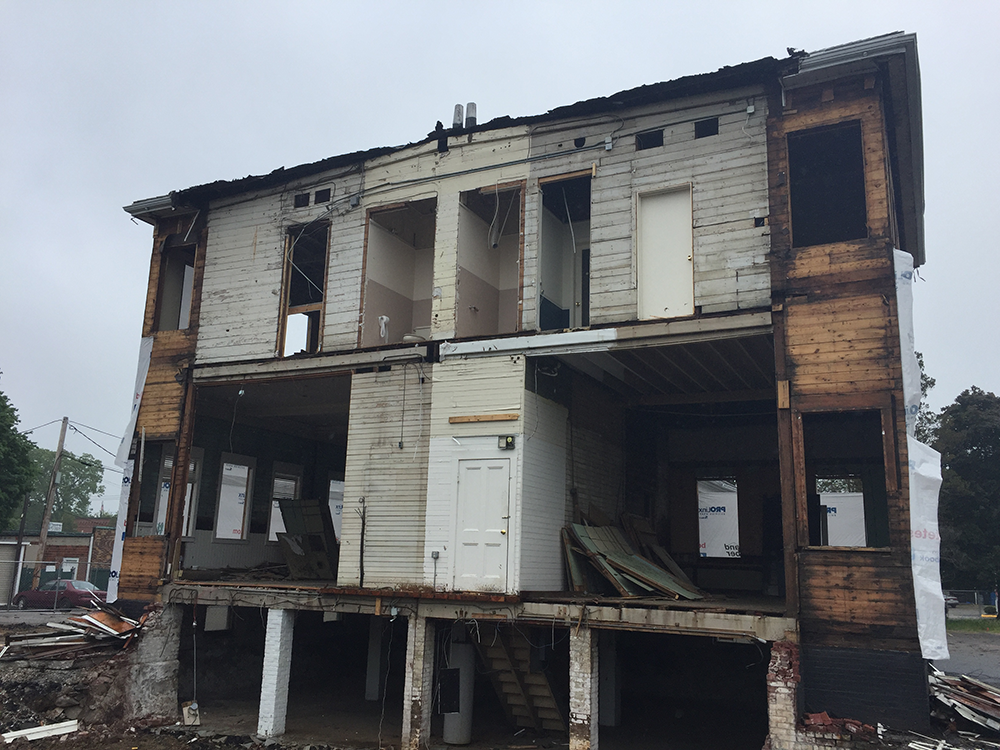 The buildings formerly occupying the site were a rambling complex of outdated manufacturing and office facilities, originally constructed by T.I. Smith Company in 1899 and most recently occupied by the Jeweled Cross Company. Great Bridge is pleased to have been able to retain and incorporate the historic head house for use as common areas for the residents and offices for the management.